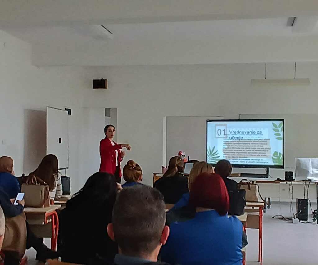 Profesorica Ahmetović je kroz izuzetno jasnu, stručnu i praktično usmjerenu prezentaciju približila značaj formativnog praćenja, kao i izazove koje donosi u implementaciji predmetnih kurikuluma. Sastanku je na poziv škole, u skladu s Uputstvom o realizaciji nastave u školskoj 2025/26. godini, prisustvovala i saradnica iz Instituta za razvoj preduniverzitetskog obrazovanja KS, Hatidža Šaljić, koja je pružila stručnu podršku i dodatne smjernice.