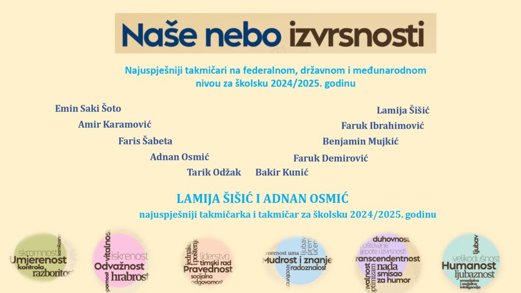 Spisak učenika VII razreda koji su ostvarili plasman na kantonalno takmičenje iz nastavnog predmeta Historija